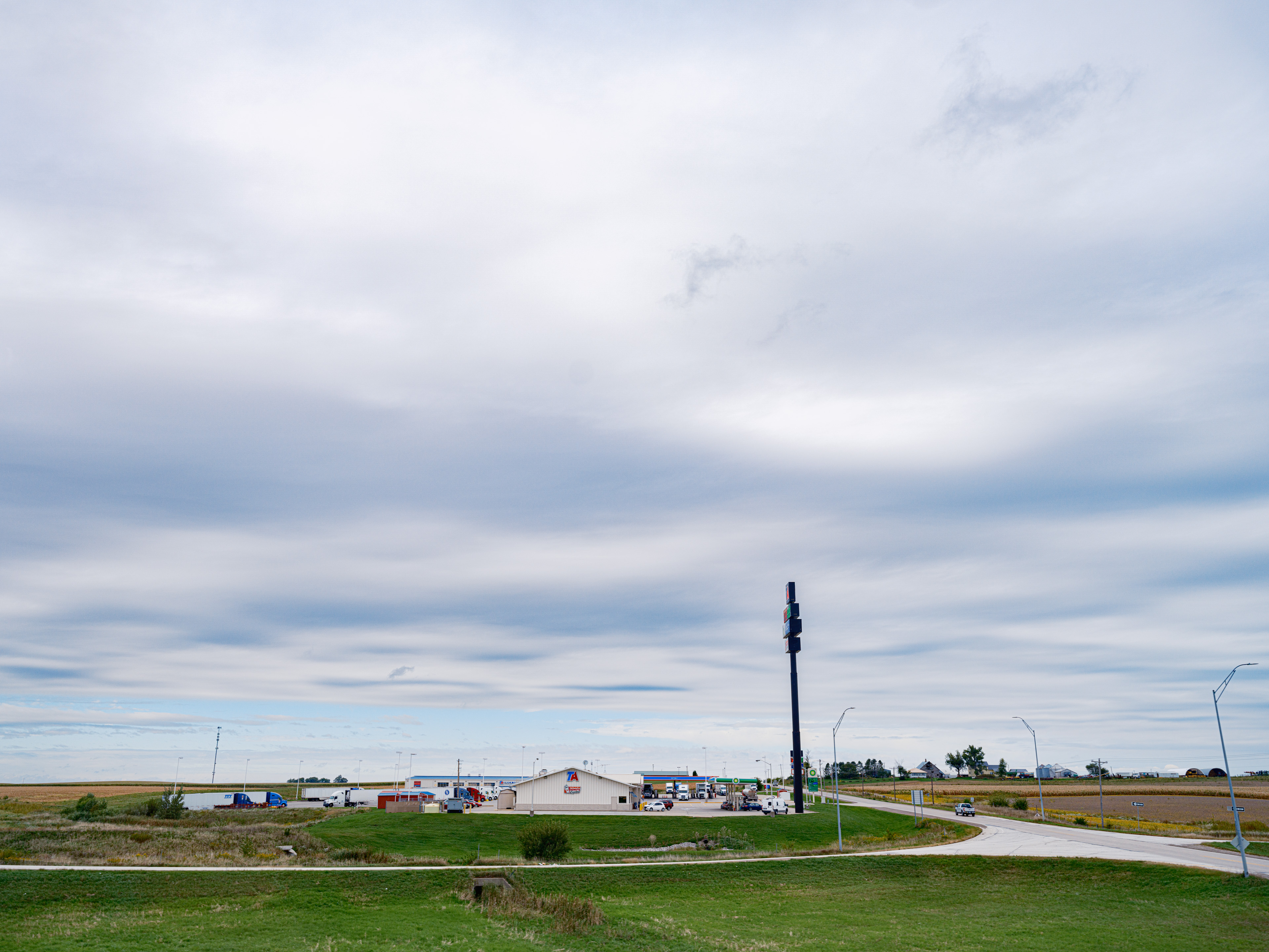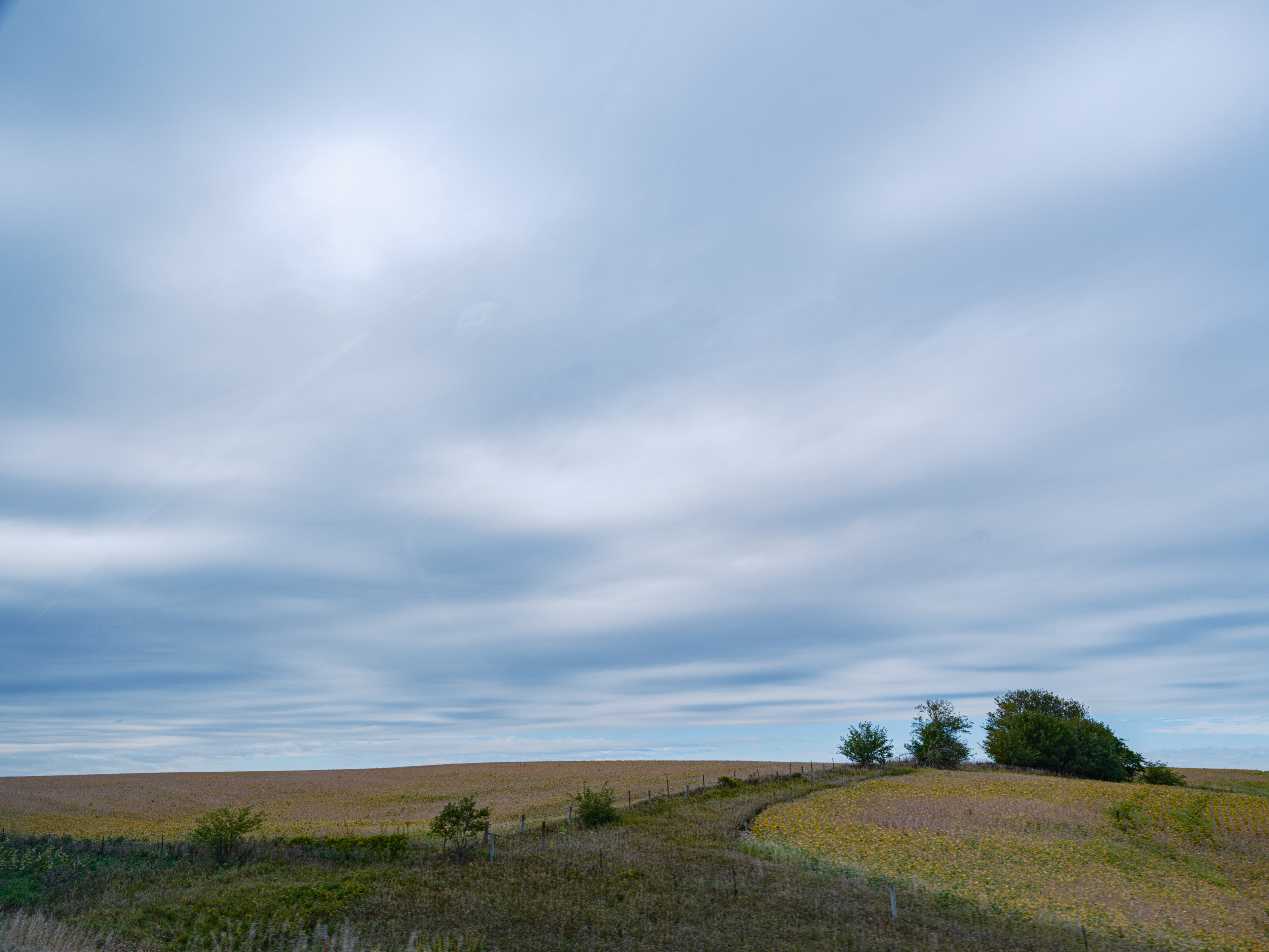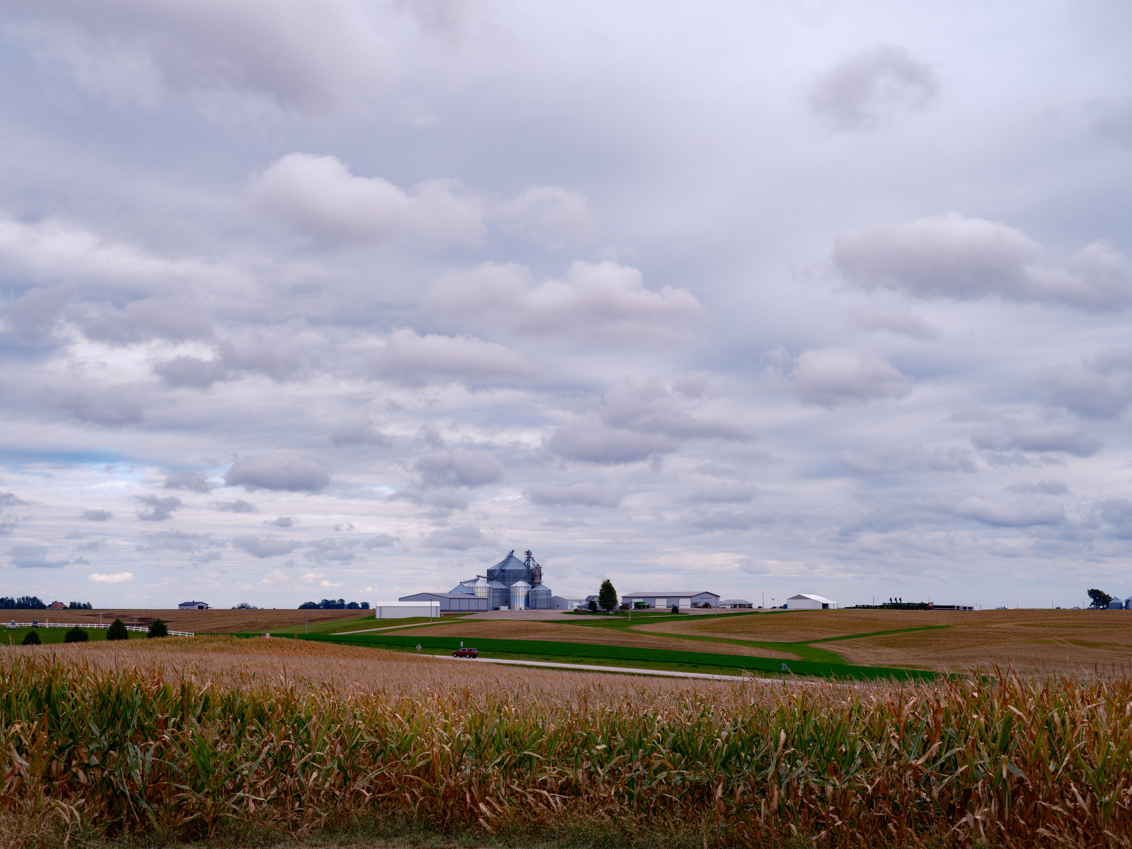 You get the big sky feeling and we saw all type of pastel color gradients in the sky and the fields, and a storm far away that created a deep blue horizon. One also grasps the economic power of the agricultural business by the sheer dimensions.