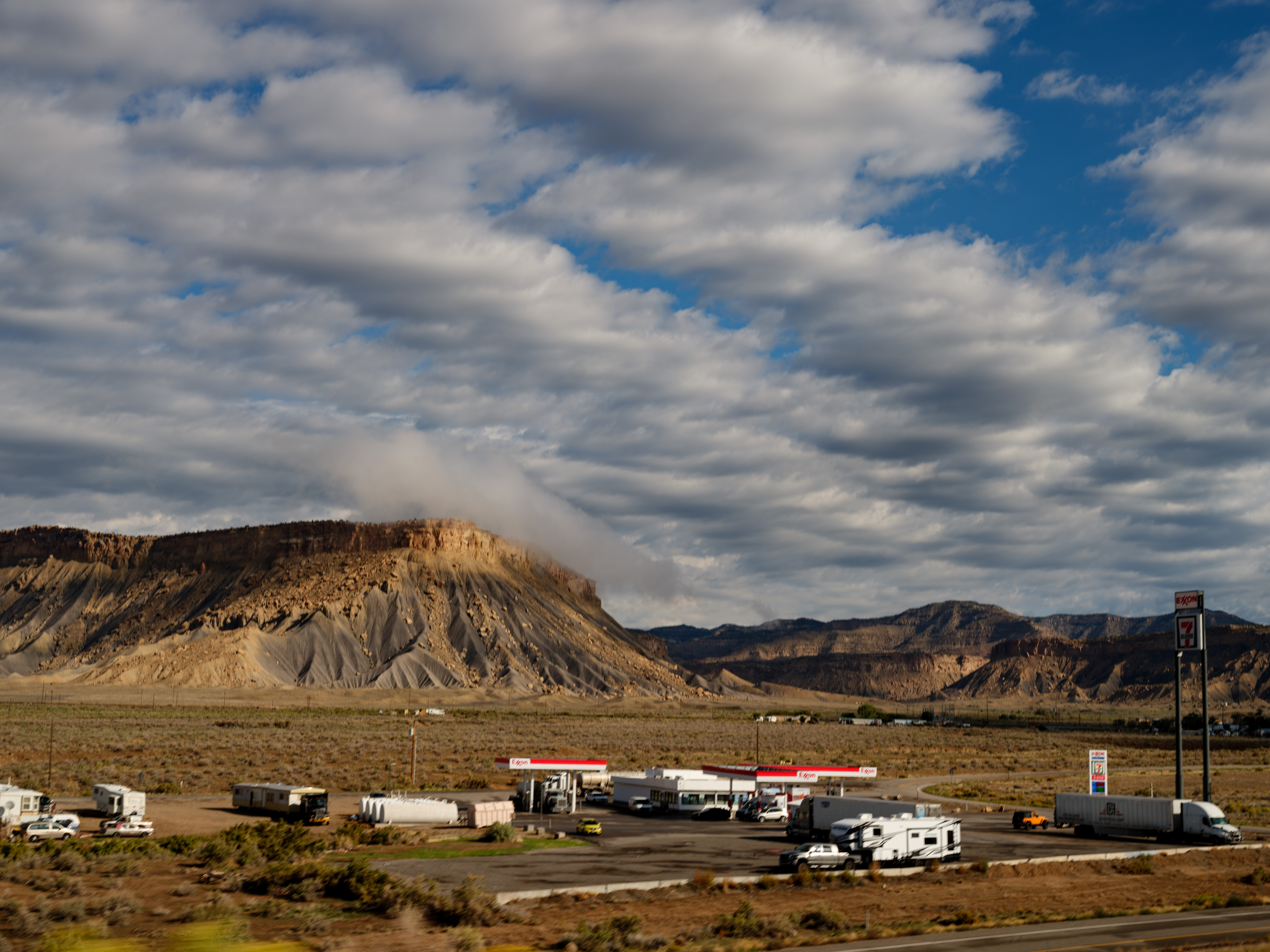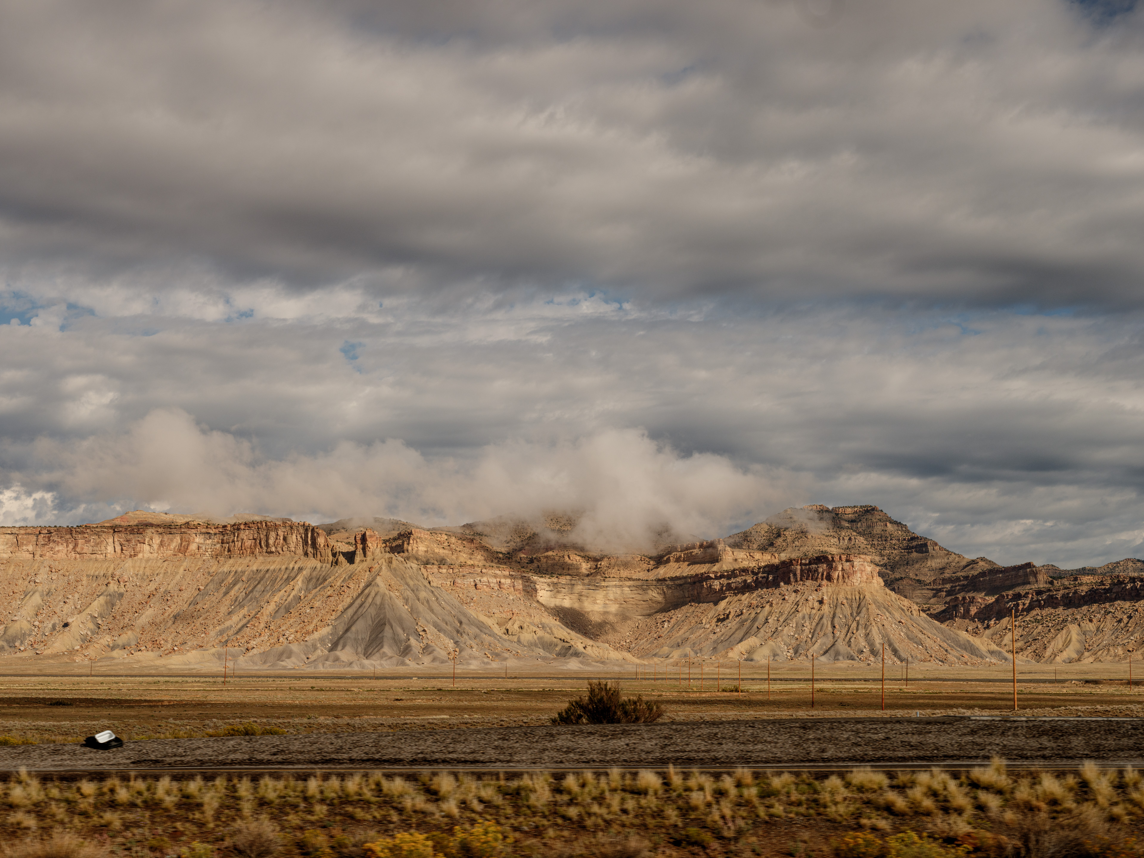 Already the drive from Grand Junction to Arches along I70 was visually amazing. We started with a thunderstorm darkening the sky: