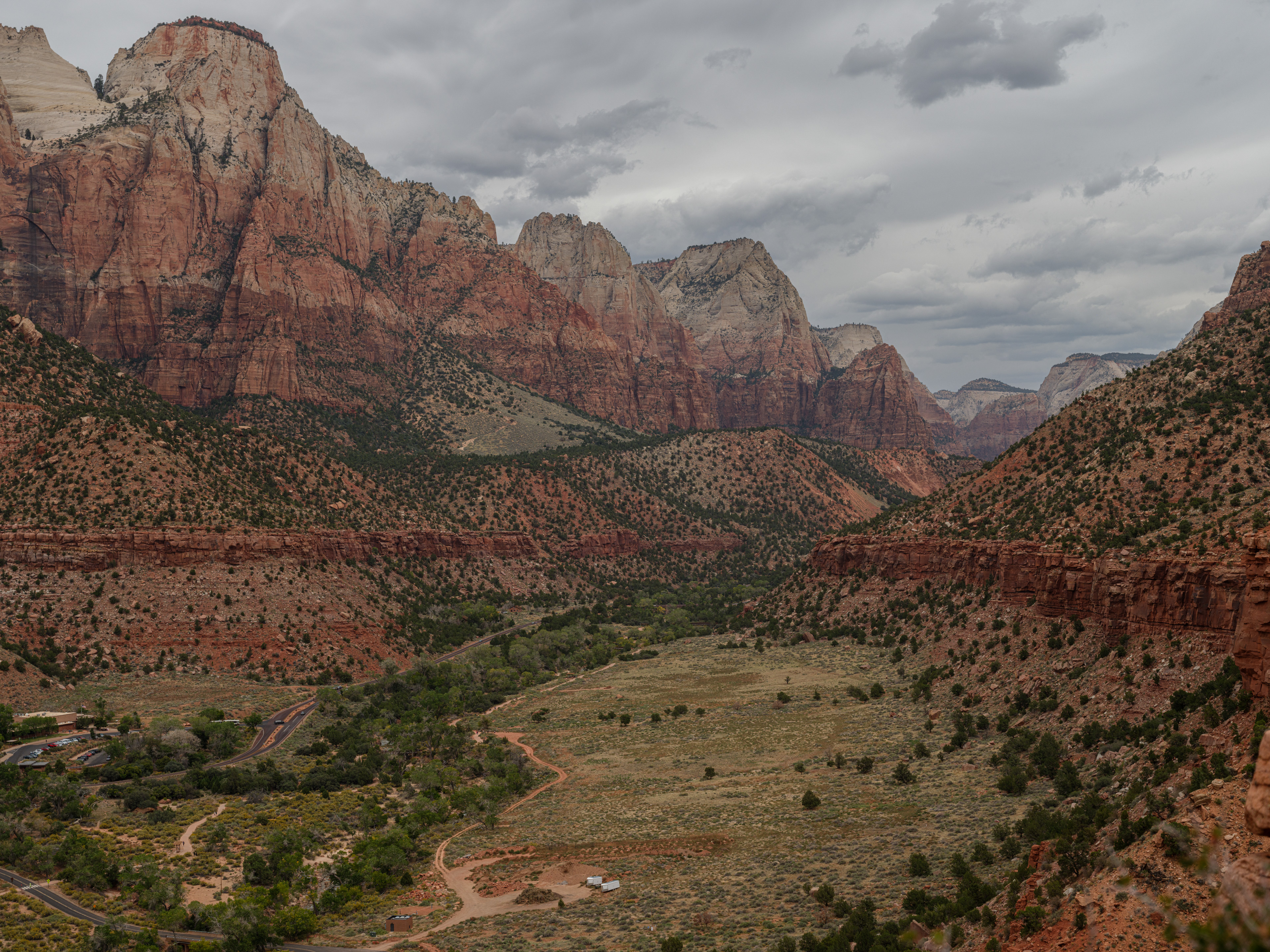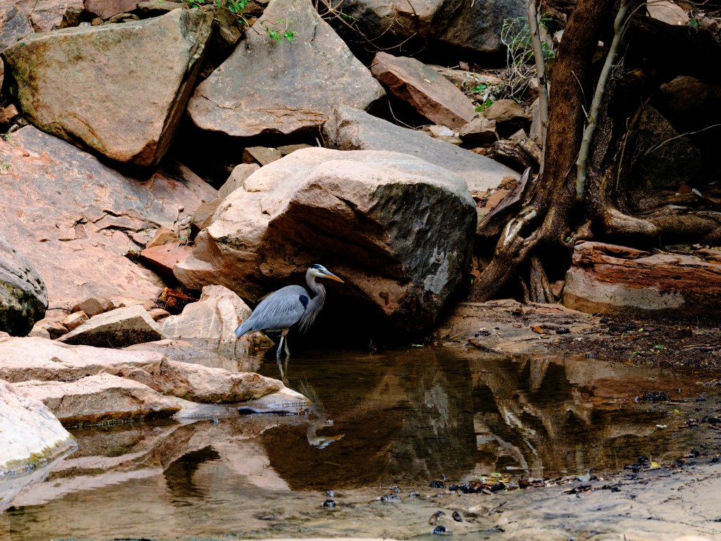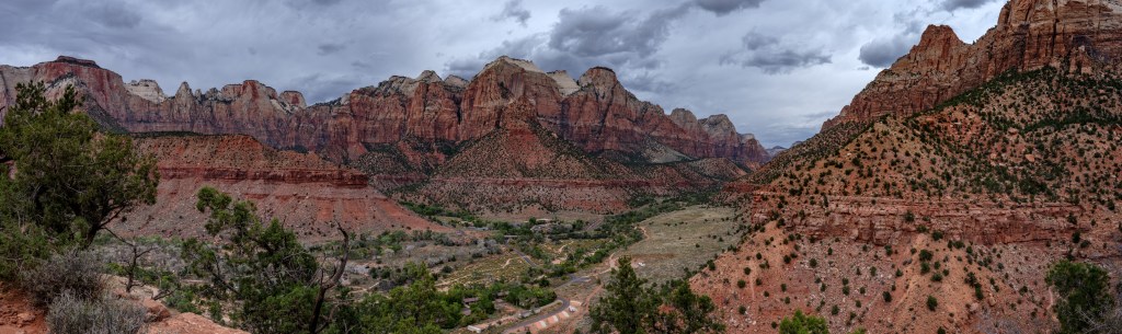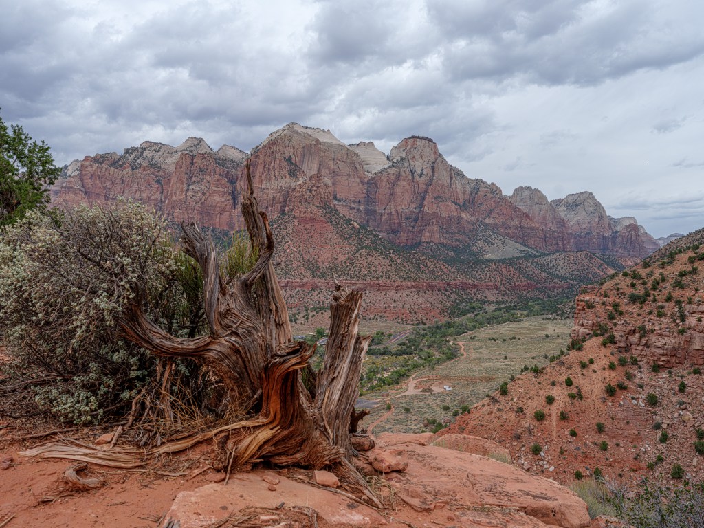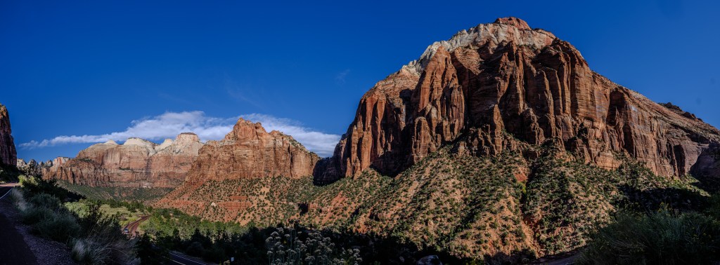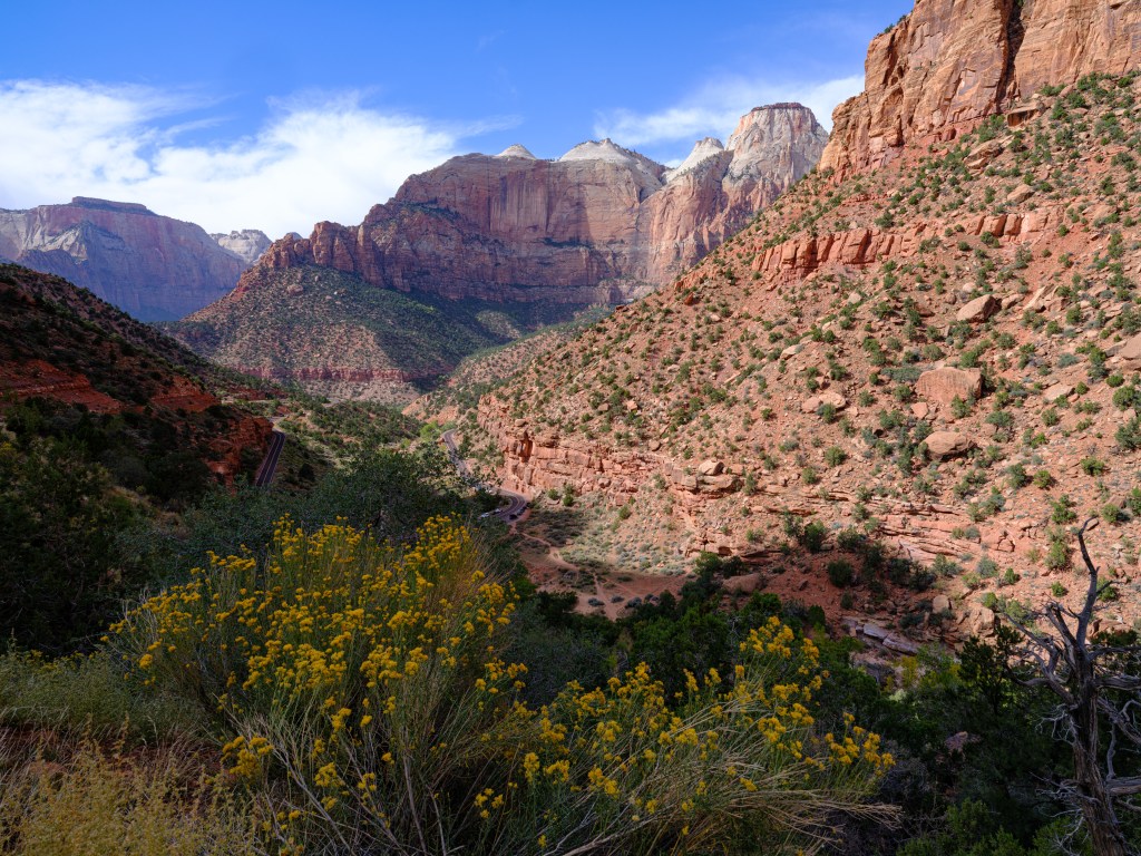 Zion offers such a enormous views of big landscape, colors, stunning rock formations, the Virgin river, ponds, waterfalls, trees, bushes, flowers and wildlife, and the weather changes very quickly.