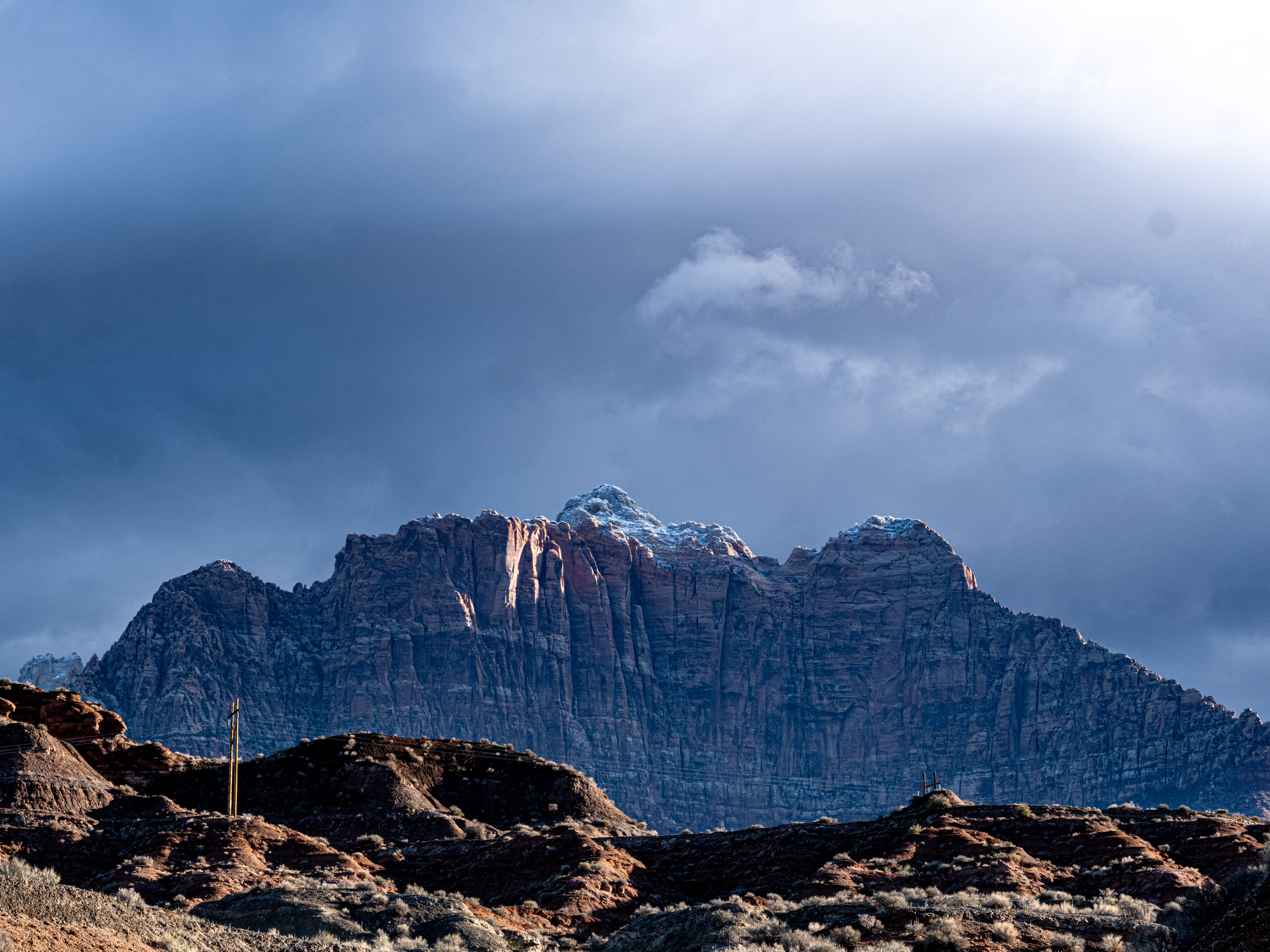 Even when driving from our hotel in La Verkin to Zion, and when driving back, we got spoiled with amazingly beautiful landscape and a dramatic light I have hardly seen in New Jersey: