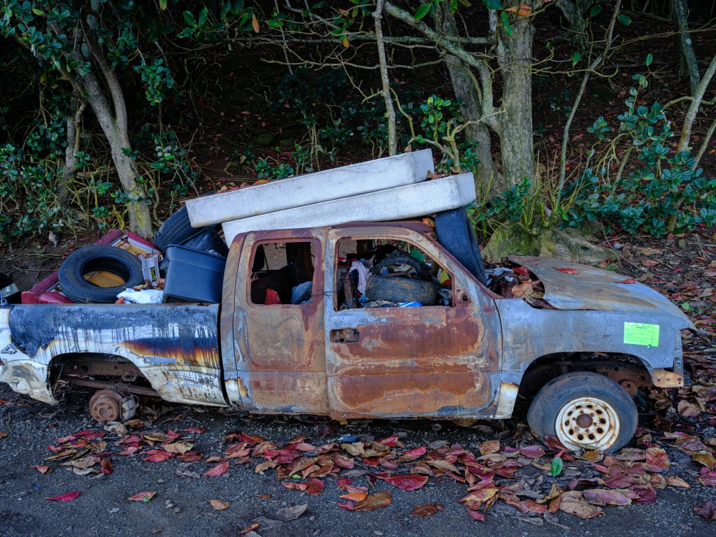 Chickens and cars have gone wild on Kauai. The chickens are feral, the cars similarly are all over the place by getting dumped anywhere, on the side of the road, on a property. Luckily, there are more wild chickens than dumped cars.