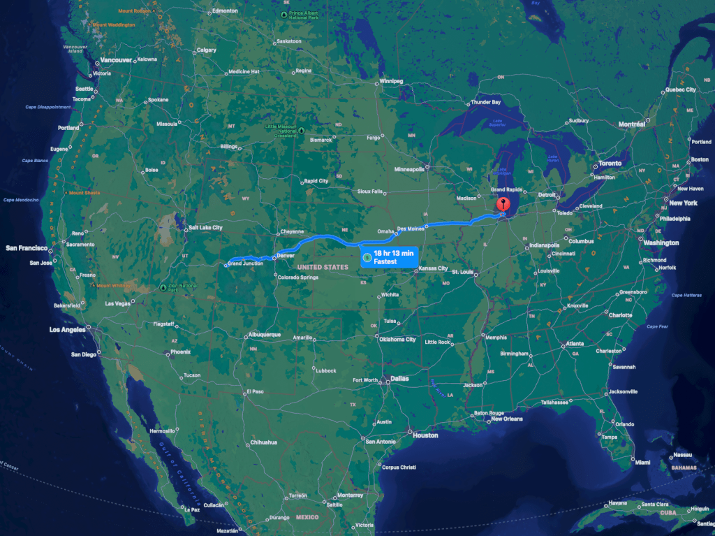 Sept. 22 Chicago (Old Town) - Grand Junction Not left yet - so total driving still at 1,079 miles / 1,726 km